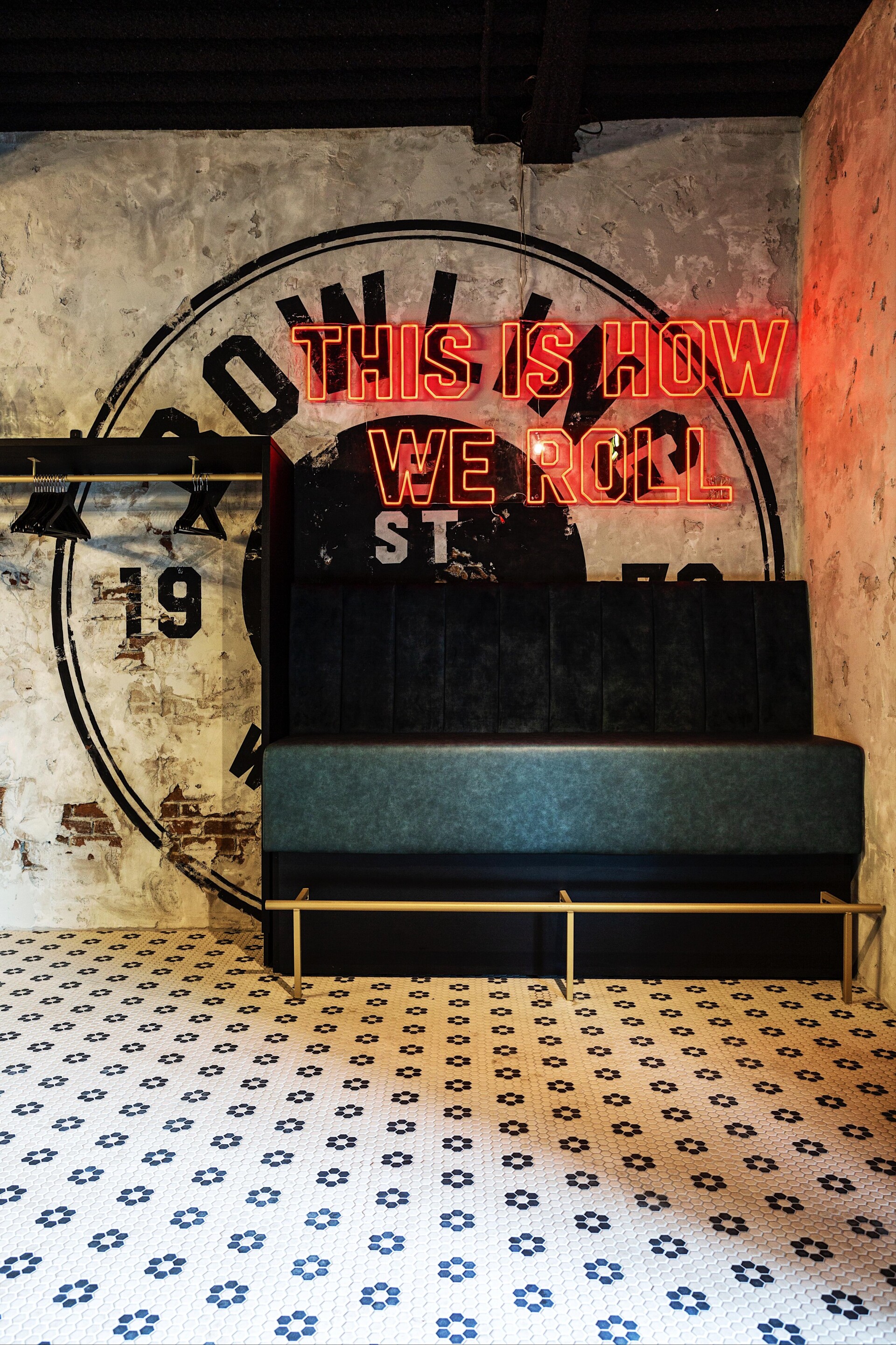 Step into Bowling Westland and you are down town, the perfect casual-chic night out. Meanwhile, the bowling alley is running at full speed and the restaurant looks like a modern-industrial hotel lobby. Just what you need for an evening of entertainment and a winning streak on the lane. To achieve the industrial look, Therdex PVC floor 4003 from the Tapis series was used. The small herringbone floor embraces a distinctive look.