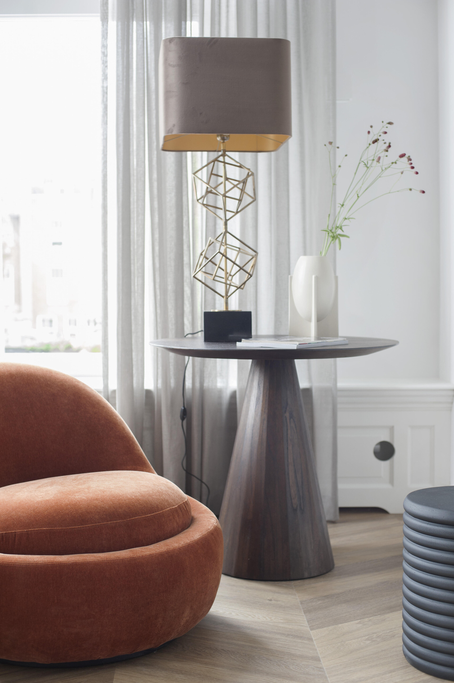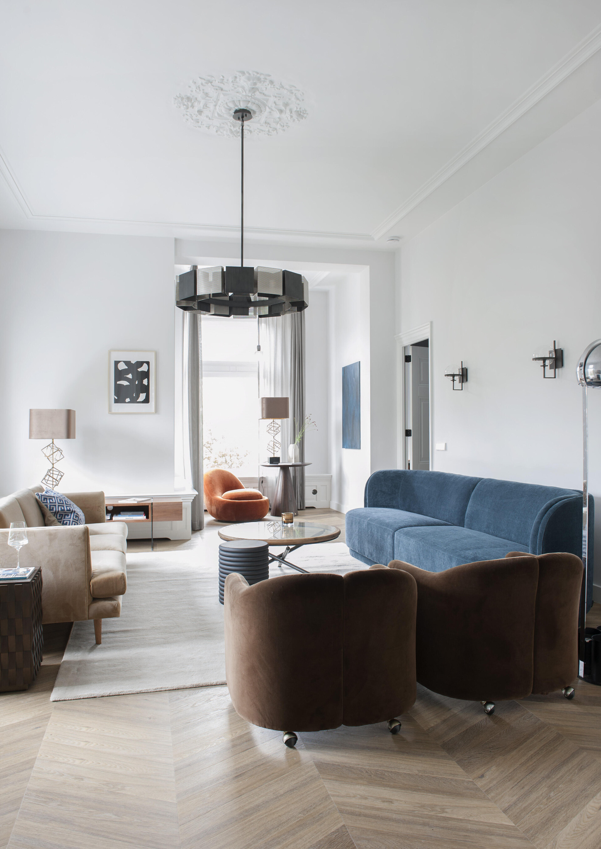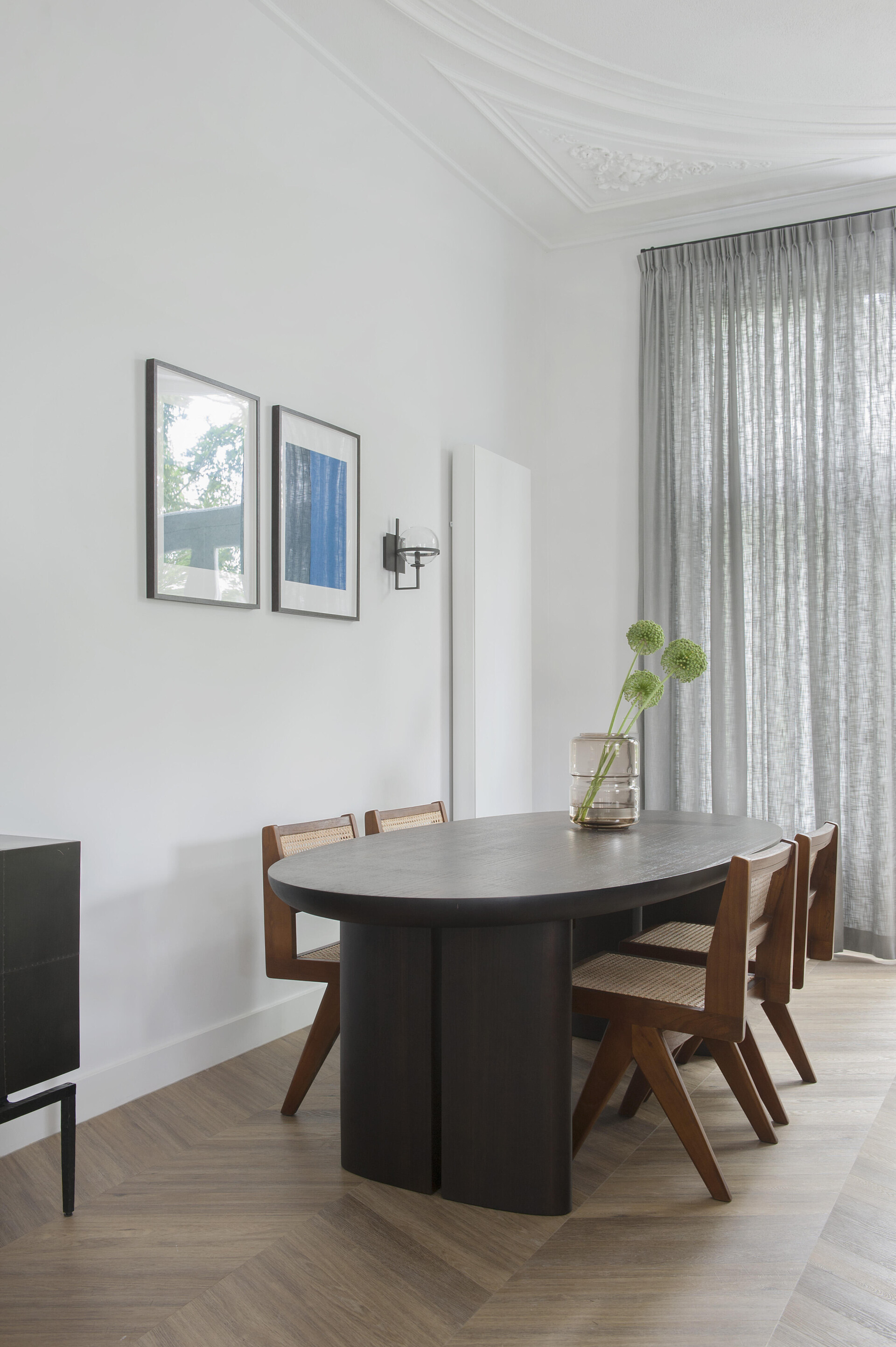 The feeling of home with an elegant atmosphere. The interior of the townhouse contains high-quality elements that coincide to create a luxurious atmosphere. The 6544 Chevron floor comes into its own with its warm dark colour and unique pattern shape.