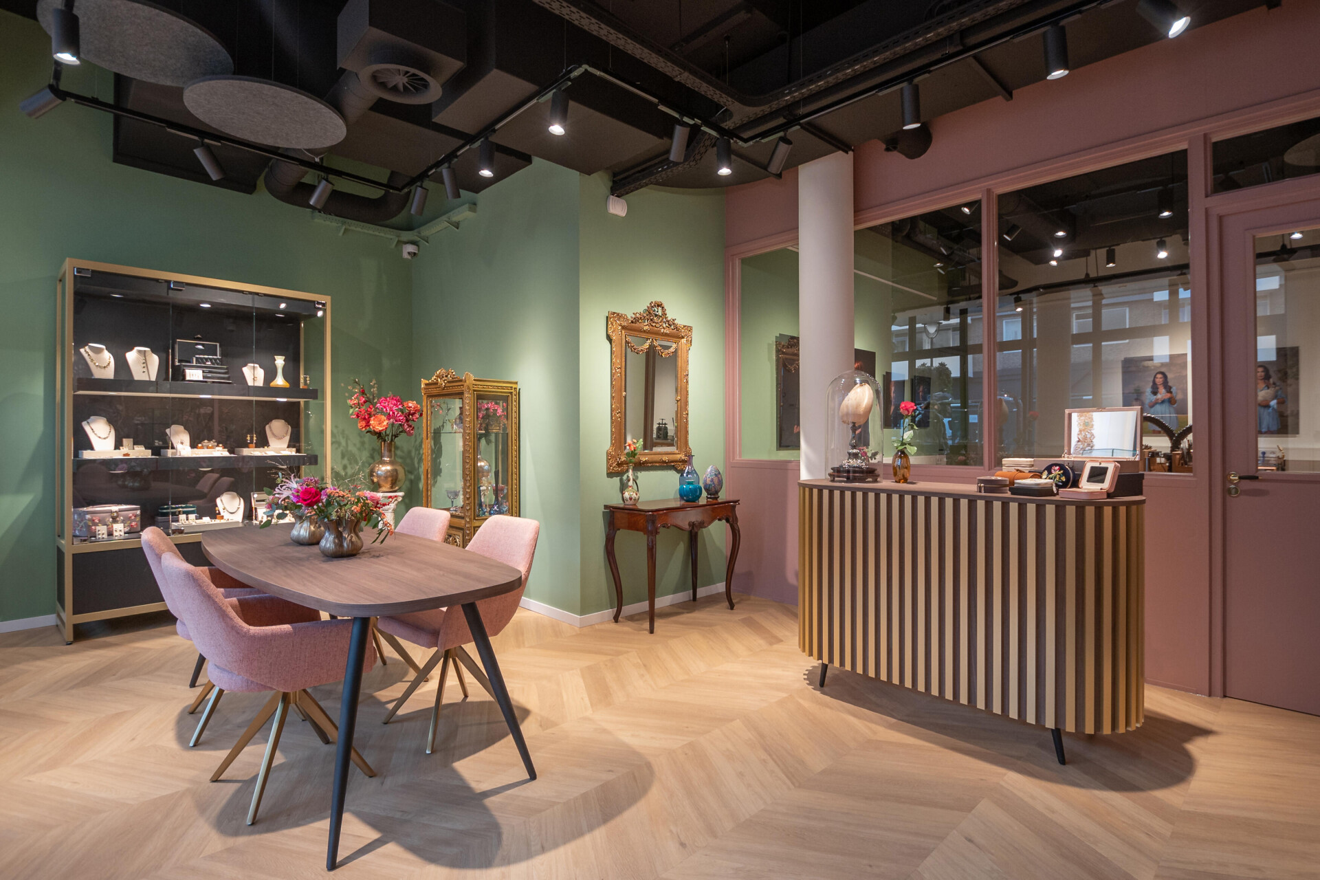 Hoogenboom & Bogers Fine Jewellery design and create jewellery in their shop and studio. The shop is furnished with various modular design pieces from Forbettershops, making the space highly efficient.
