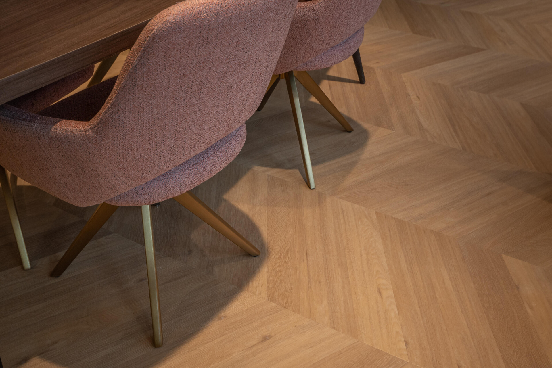 The space is perfectly supported by the Therdex 6541. This herringbone pattern creates a seamless and cohesive look throughout the interior.