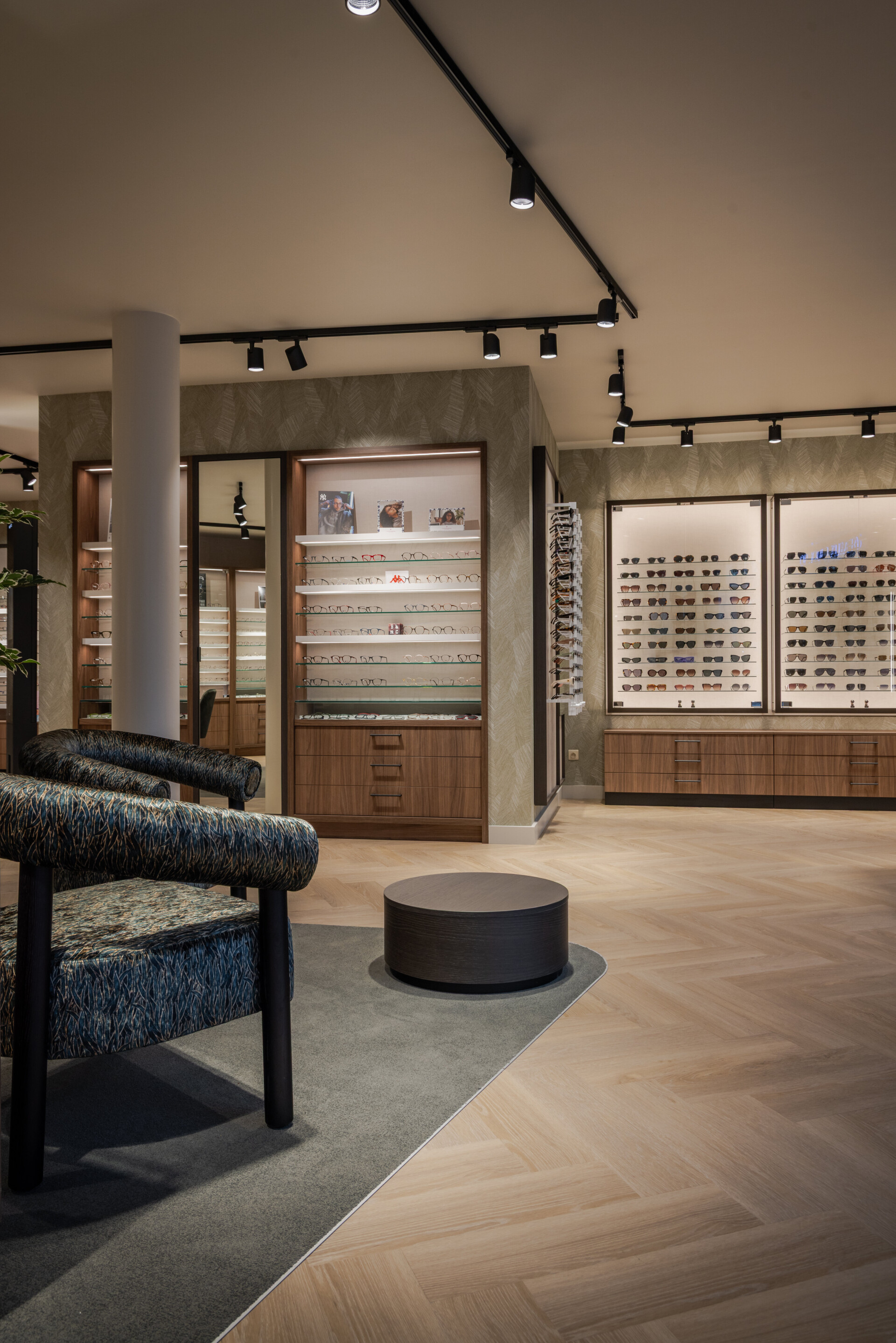 In this optician in La Louvière, the focus is on clarity and a clear presentation of the collection.