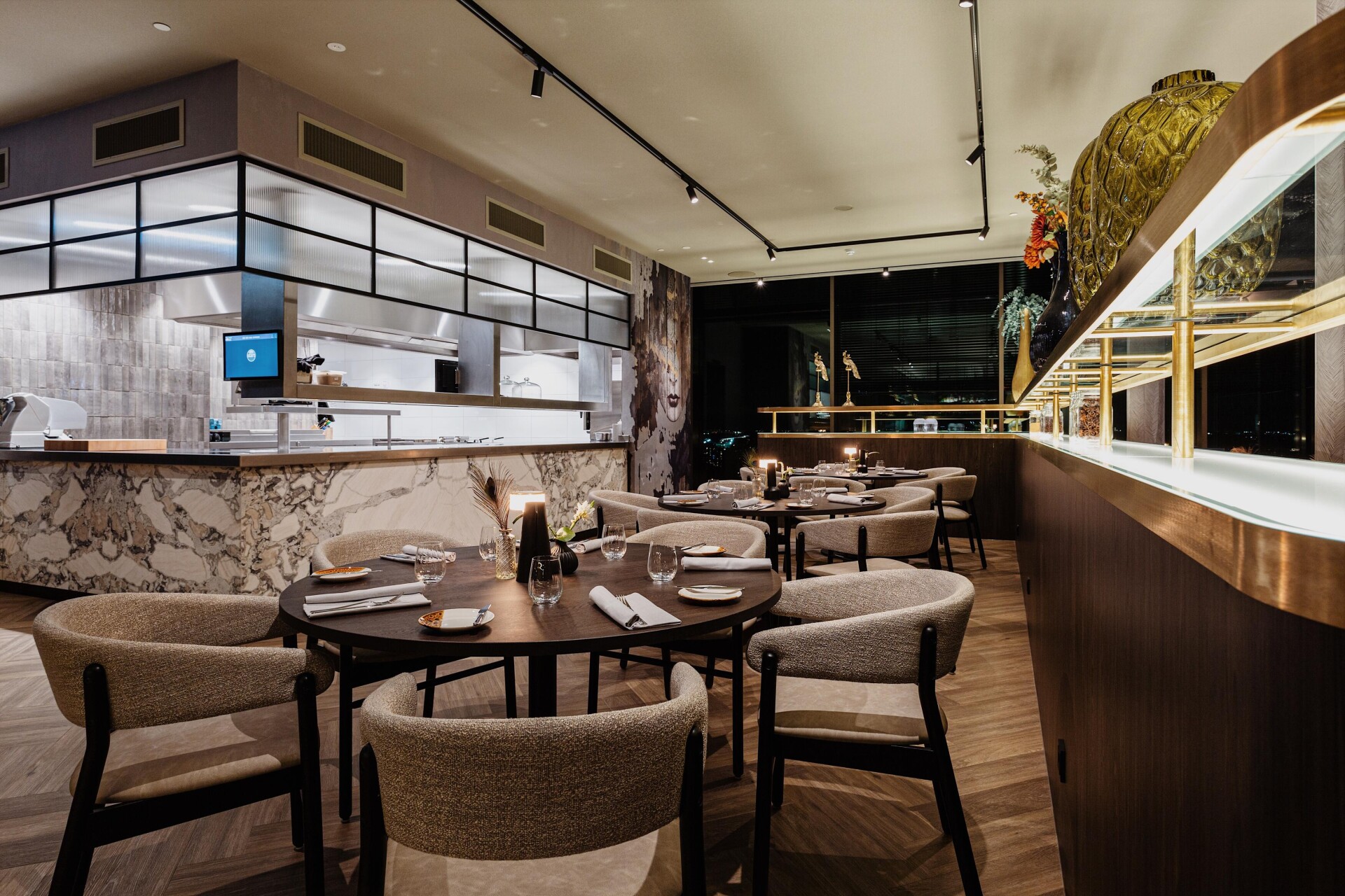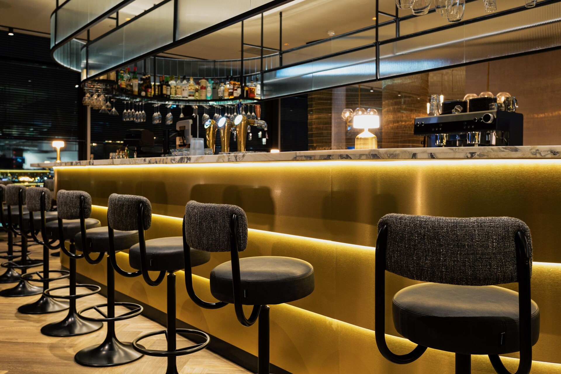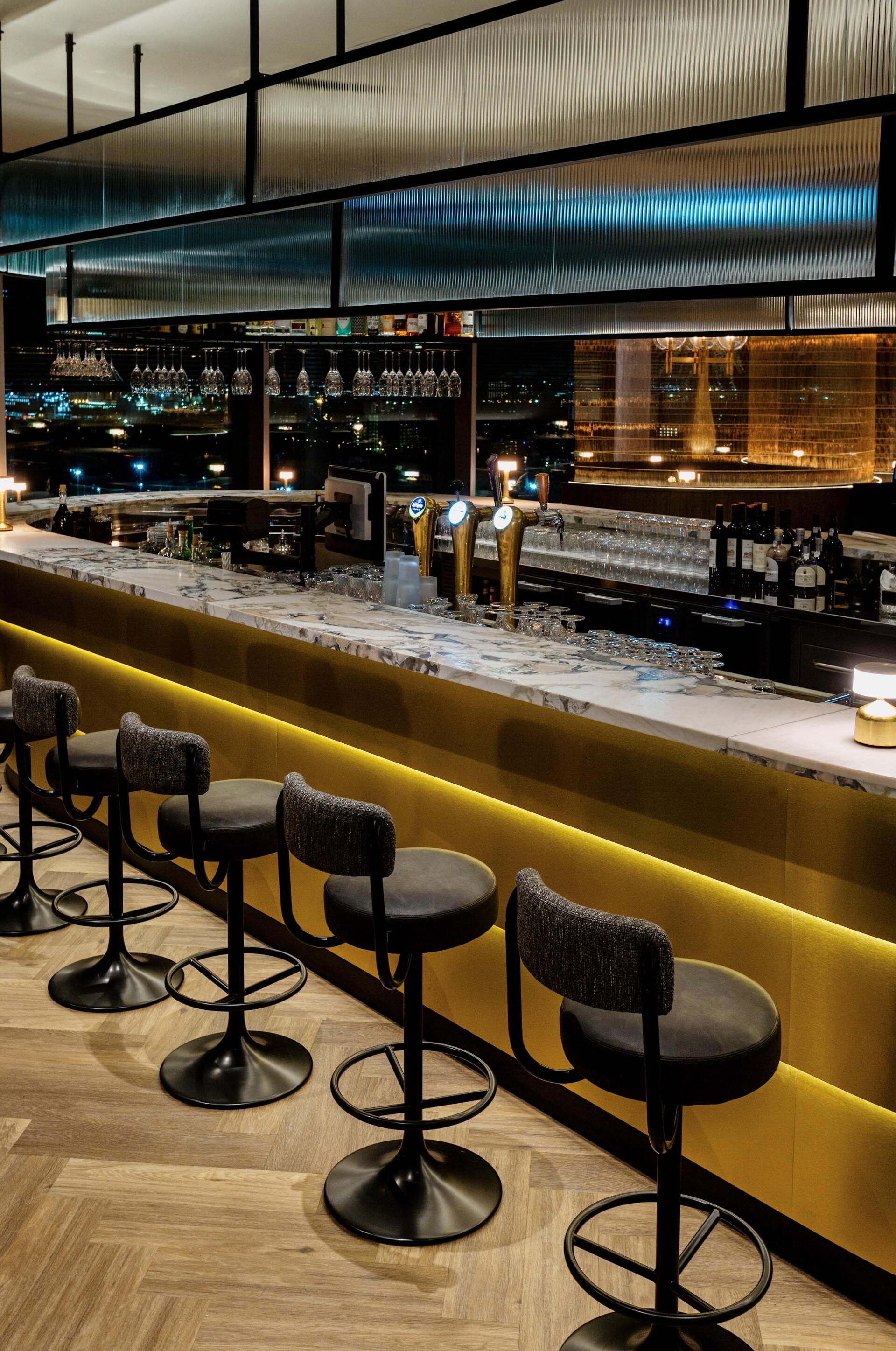 The result of the design by Horeca Sfeermakers is a special interior with the colors dark green, dark blue, corn yellow and gray as a common thread. Therdex 6041 was applied in the project. A quiet, herringbone floor that goes perfectly with the dark marble elements and the striking wallpaper.