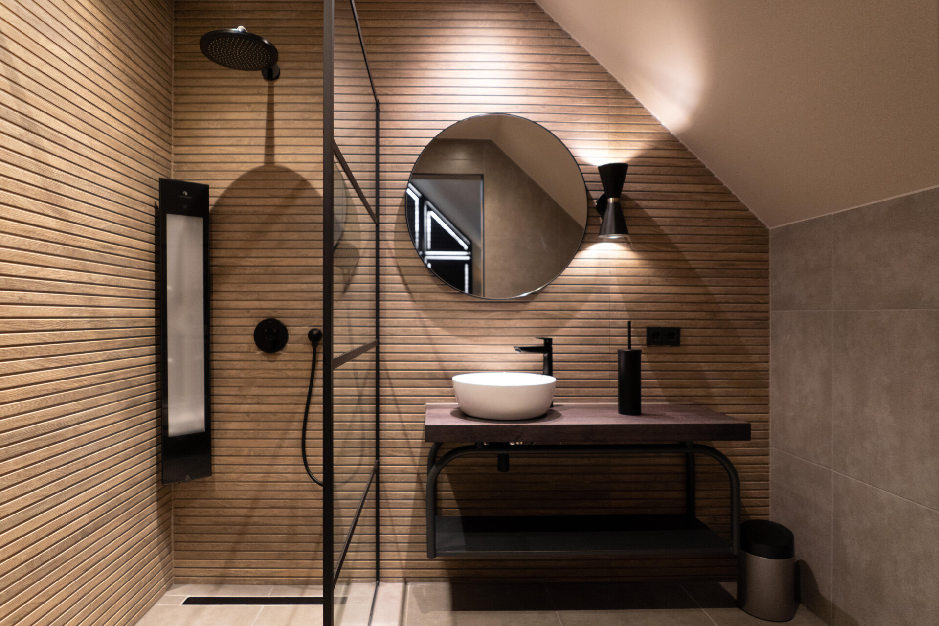 Vacation at a high level. The luxuriously furnished villa is spacious and has a modern, contemporary architecture. The calm and natural-looking floor 6543 in Hungarian point flows beautifully into the large window, which offers a view of the natural environment.