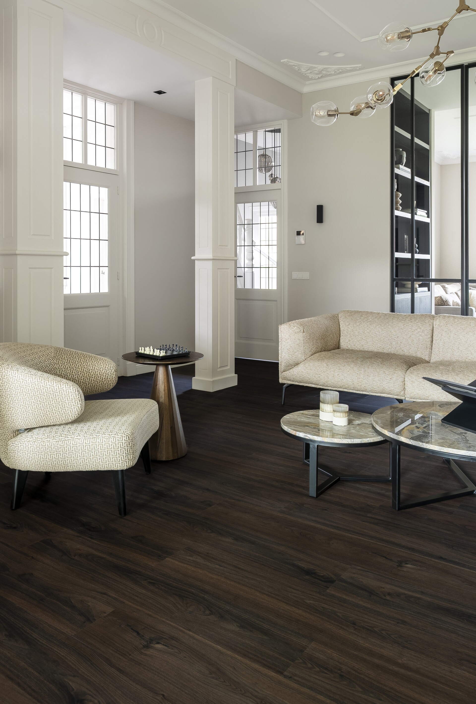 The Walnut series is inspired by the distinctive depth and warmth of walnut wood and offers a rich, natural look with a pronounced character. The refined grain structures and subtle colour nuances highlight the authentic, elegant appearance that is so characteristic of this wood type. The collection is available in planks and herringbone designs.