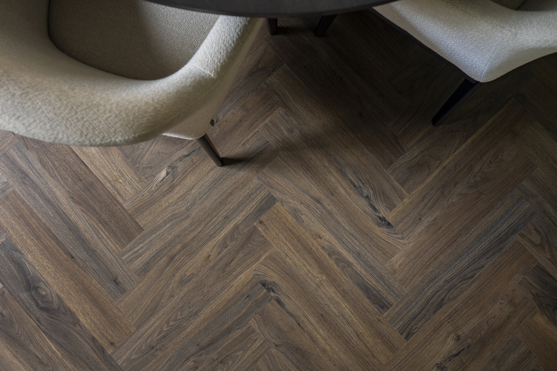 The Walnut series is inspired by the distinctive depth and warmth of walnut wood and offers a rich, natural look with a pronounced character. The refined grain structures and subtle colour nuances highlight the authentic, elegant appearance that is so characteristic of this wood type. The collection is available in planks and herringbone designs.